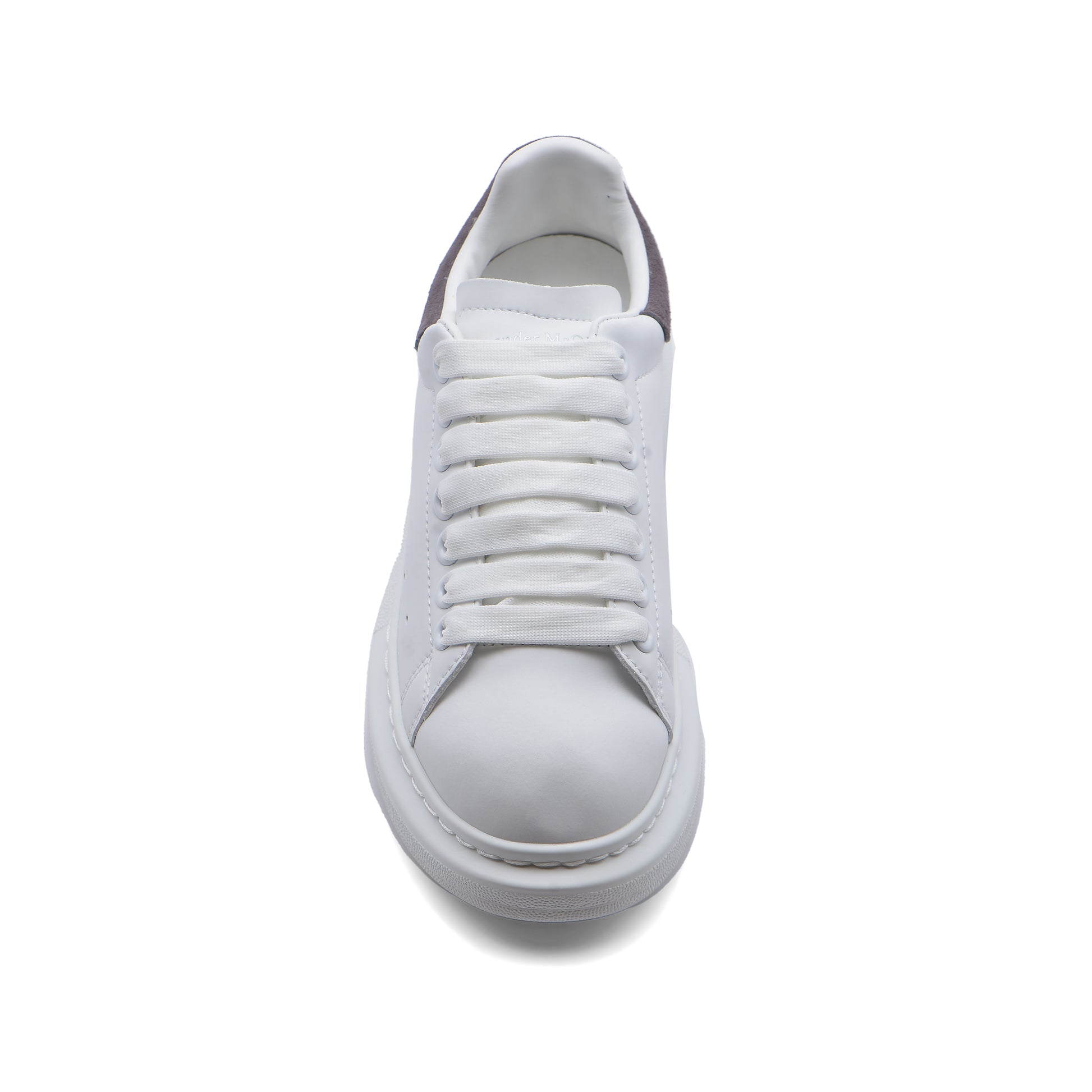 Alexander McQueen's iconic sneaker silhouette merges avant-garde design with refined craftsmanship. This women's style features a striking white and gray colorway that transitions seamlessly from casual to elevated settings. The architectural construction showcases the brand's signature aesthetic—clean lines paired with unexpected details that distinguish it from conventional footwear. Built with premium materials and meticulous attention to detail, these sneakers deliver both comfort and a statement-making presence. Perfect for those who appreciate luxury sportswear that transcends seasonal trends and everyday wear.