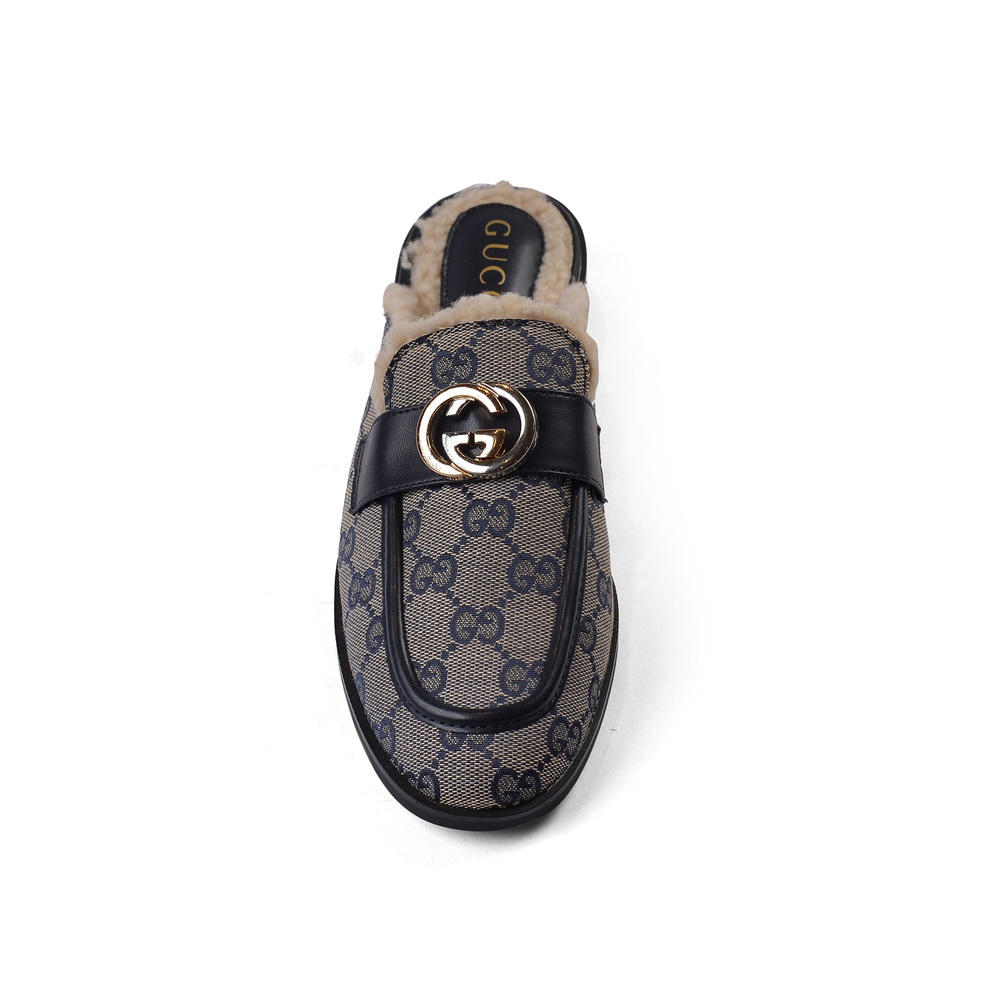 Gucci Flat Open Back Loafer Fur Slipper Luxury Woman VI-177 Navy