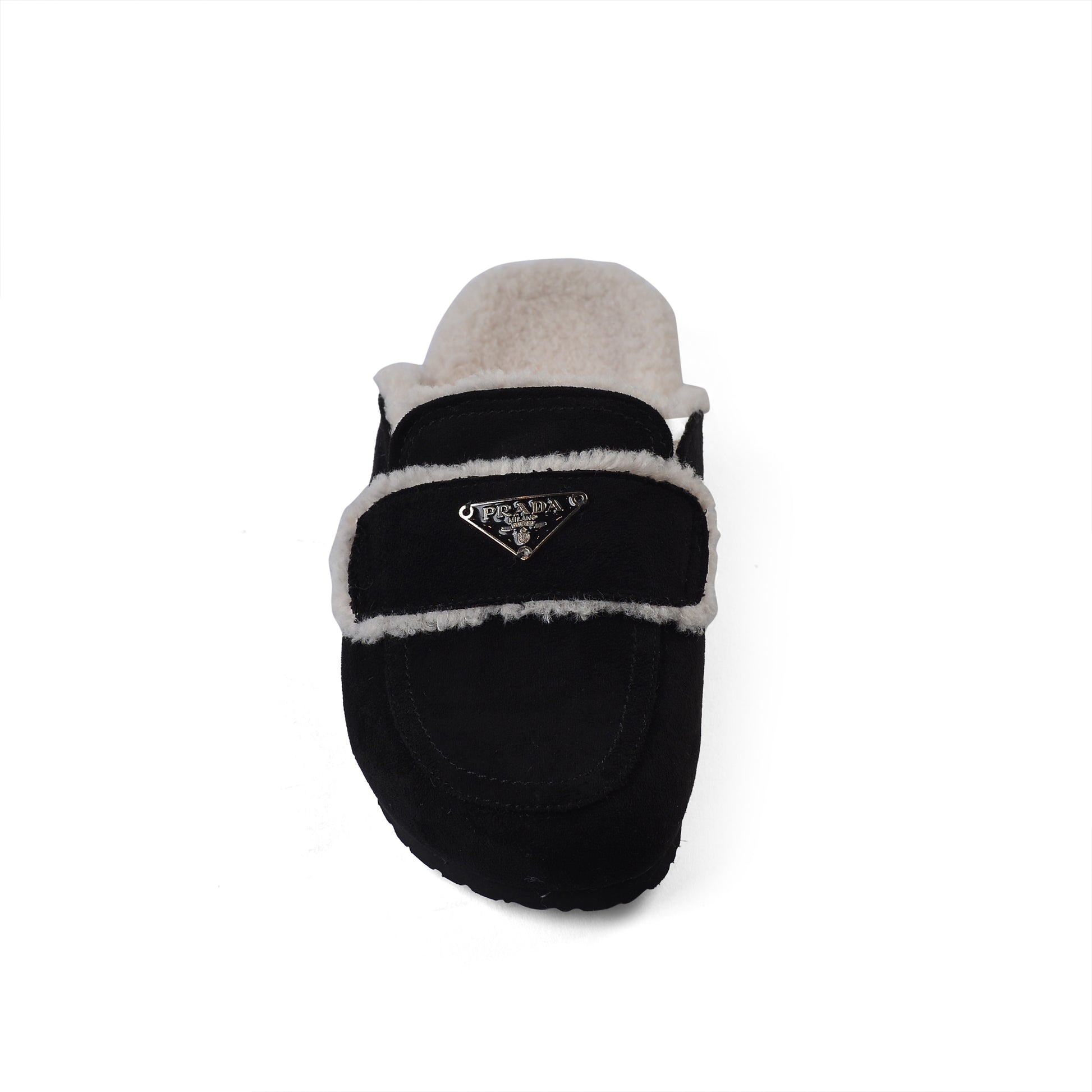 PRADA Flat Open Back Loafer Fur Slipper Luxury Woman VK-112 Black