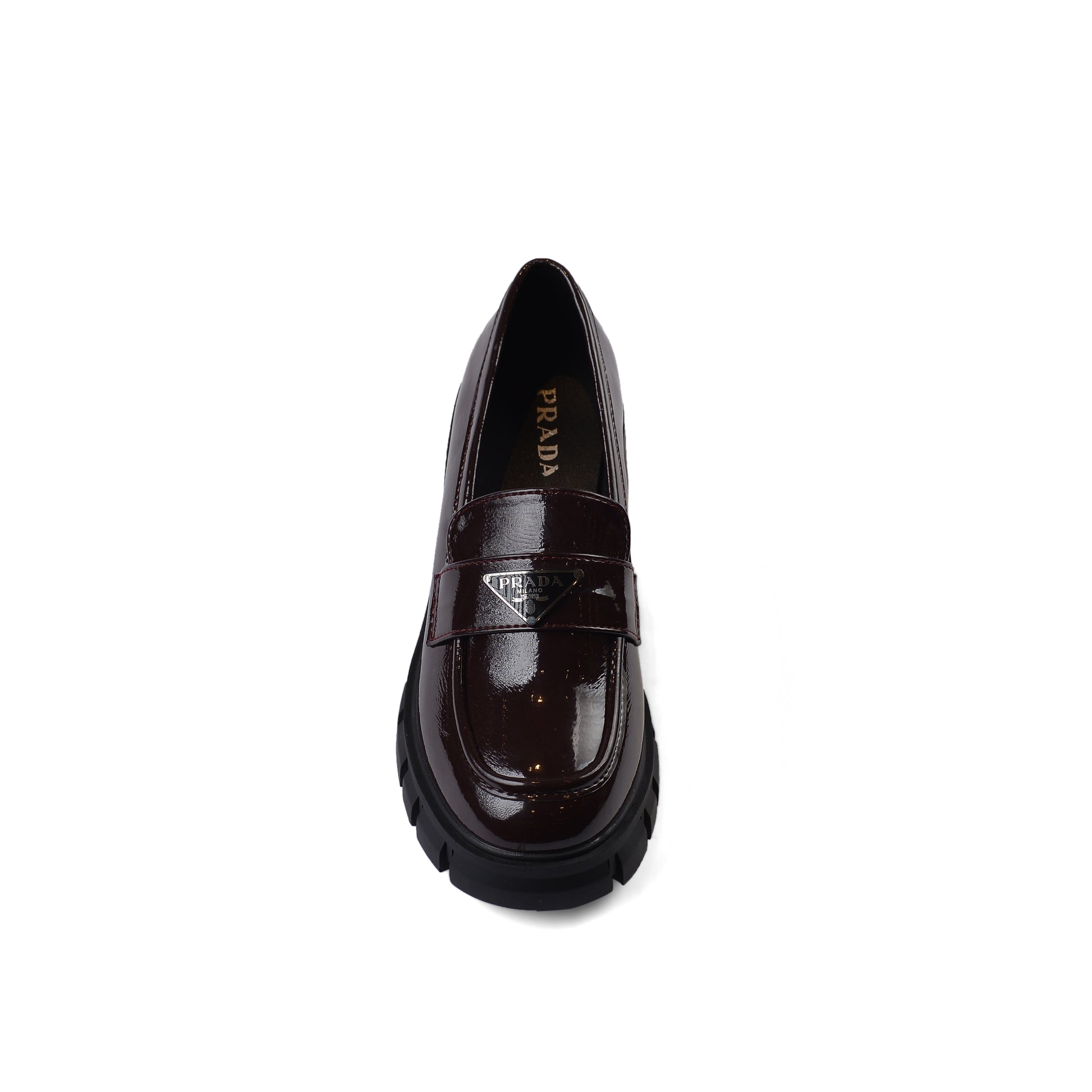 Prada Monolith Leather Loafers shines High Heels Woman TN-165 Coffee